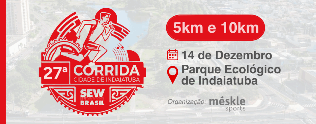 A 27º Corrida Cidade de Indaiatuba acontecerá no dia 14 de dezembro às 07:00 no Parque Ecológico, terá as modalidades de Corrida e Caminhada de 5 km, e Corrida de 10 km.