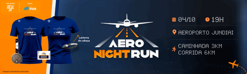 Aero Night Run acontecerá no dia 04 de outubro de 2025 às 19:00 no aeroporto de Jundiaí.