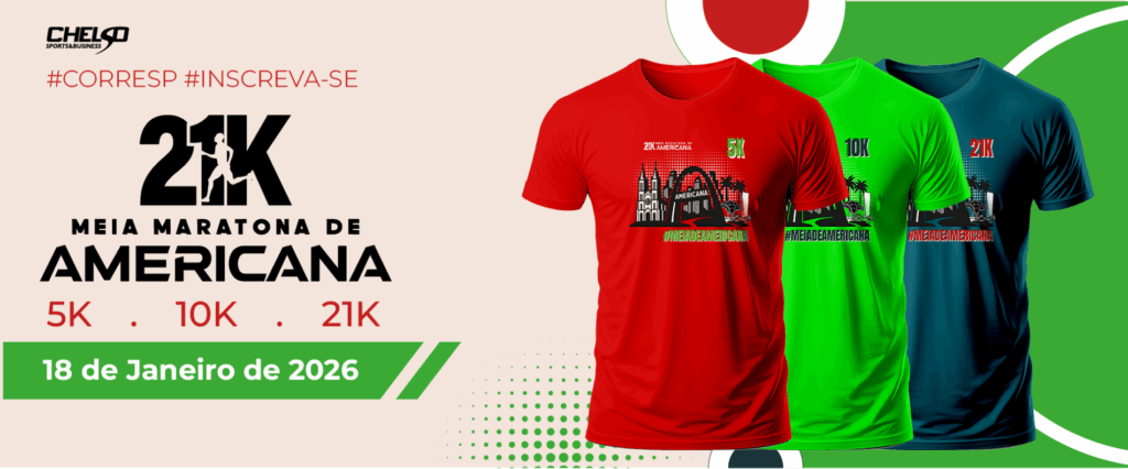 O Circuito Corre SP terá 3 etapas, sendo a 1º no dia 18 de janeiro de 2026, a Meia Maratona de Americana terá as distâncias de 5km e 10km e 21km.