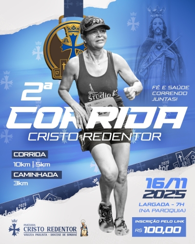 A 2º edição da Corrida Cristo Redentor será realizada no dia 16 de novembro às 07:00 em Varzea Paulista, na distância de 5km e 10km para Corrida e 3km para Caminhada.