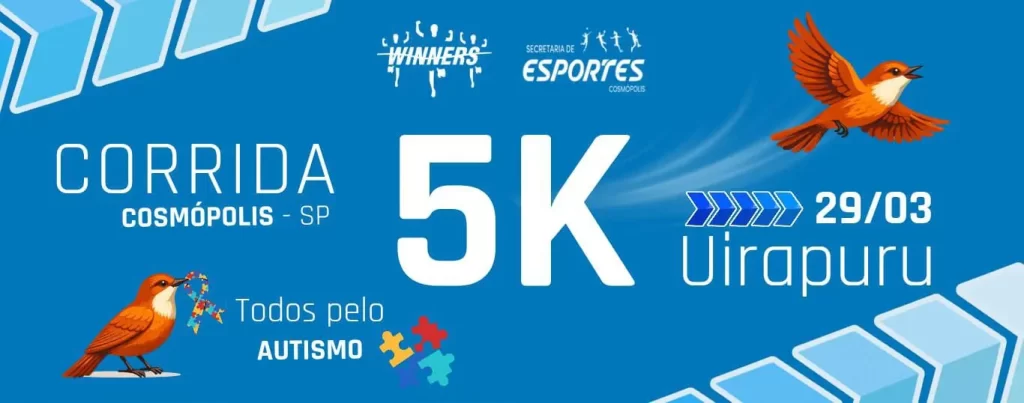 A Corrida do Uirapuru todos pelo Autismo acontecerá no dia 29 de março de 2026 às 07:00 em Cosmópolis, terá as modalidades: Corrida 5 km e Caminhada 2,5 km.