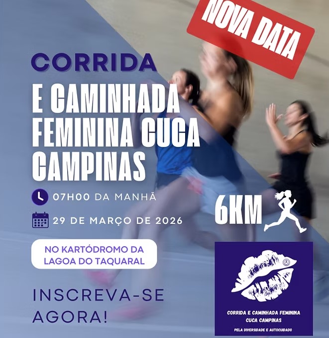 A Corrida e Caminhada Feminina Cuca Campinas será no dia 29 de março às 07:00 no Kartódromo do Taquaral, terá a distância de 6km.