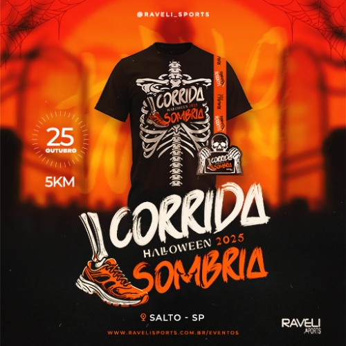 A Corrida Halloween Sombria acontecerá no dia 25 de outubro às 19:00 em Salto, na distância de 5km.