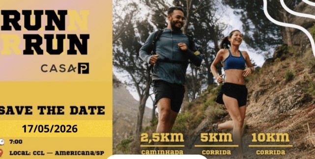 A Corrida Run Run Casa P Fest será no dia 17 de maio de 2026 às 07:00 em Americana, terá as modalidades de Corrida 5km e 10km e Caminhada 2,5km.
