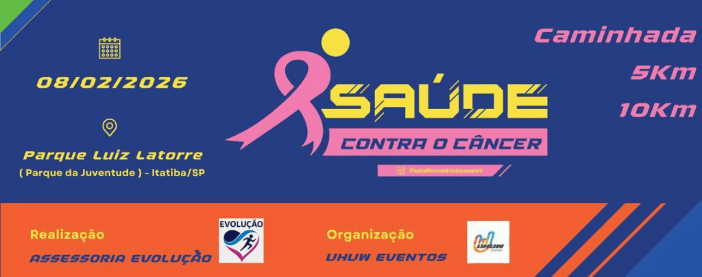 A Corrida Saúde Contra o Câncer acontecerá no dia 08 de fevereiro de 2026 às 07:00 em Itatiba-SP, terá as modalidades de Corrida 5km e 10km e Caminhada 3km.