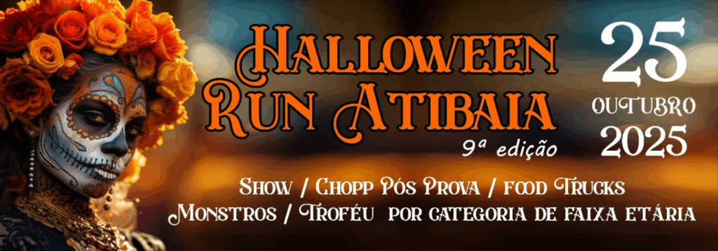 Halloween Run aconceterá no dia 25 de outubro às 20 horas em Atibaia, e terá as modalidades Corrida 6KM, Caminhada 3KM, Corrida Kids.