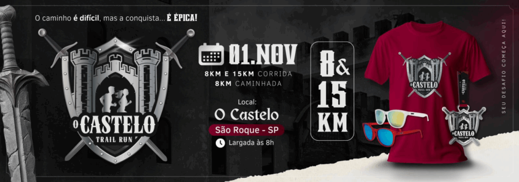 A 1º edição O Castelo Trail Run será no dia 01 de novembro às 08:00 em São Roque, terá as modalidades: 8 Km Caminhada / 8 Km Corrida / 15 Km Corrida.